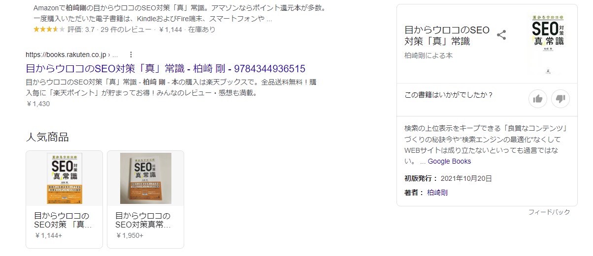さらに、書籍を出版している人物の場合、書籍に関するナレッジパネルが表示されることもあります。これらは、Googleが人物の活動や信頼性を評価する際に参考にしている可能性がある要素です。