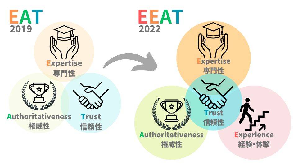 - 2022年12月、「Experience(経験)」が加わり、以前のE-A-Tがアップデートされた。