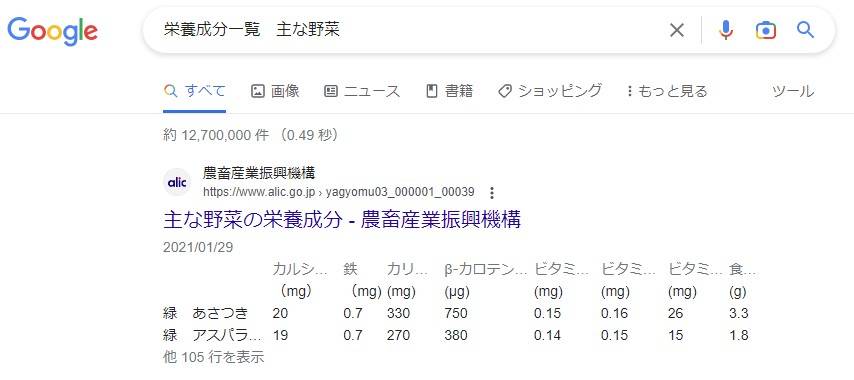 このタイプの強調スニペットは、ページ内の<table>といったテーブルを表現するタグでマークアップされたテキストが抽出されます。