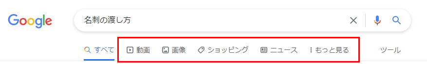 赤枠の部分が、「名刺の渡し方」に関するバーティカル検索です。
