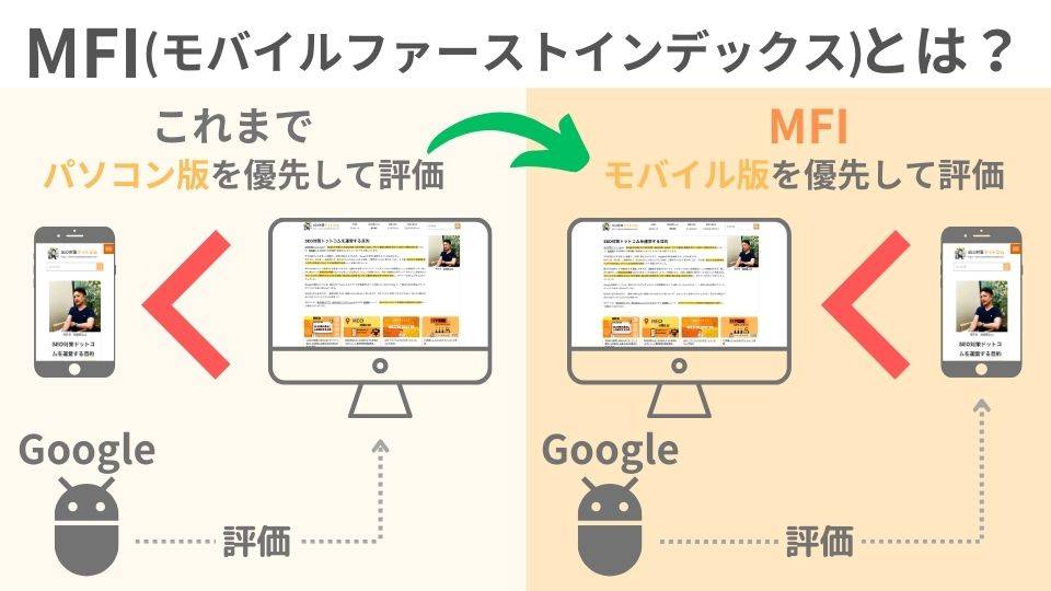 MFIとはPCで作られたコンテンツではなく、スマートフォン用に最適化されたページを優先的に評価する考え方です。